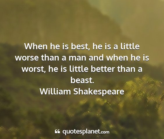 When he is best, he is a little worse than a man and when he is worst, he is little better than a beast.William Shakespeare