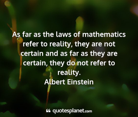 As far as the laws of mathematics refer to reality, they are not certain and as far as they are certain, they do not refer to reality.Albert Einstein