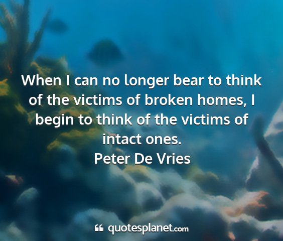 When I can no longer bear to think of the victims of broken homes, I begin to think of the victims of intact ones.Peter De Vries