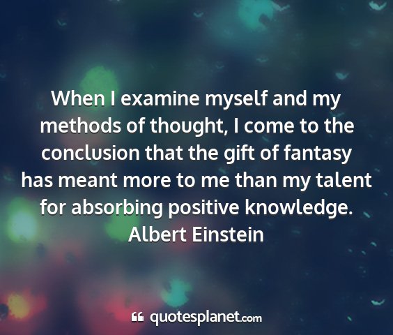 When I examine myself and my methods of thought, I come to the conclusion that the gift of fantasy has meant more to me than my talent for absorbing positive knowledge.Albert Einstein