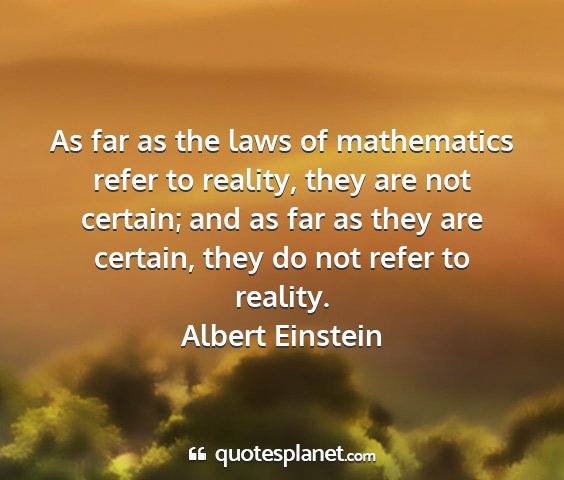 As far as the laws of mathematics refer to reality, they are not certain; and as far as they are certain, they do not refer to reality.
