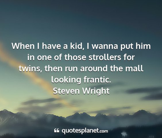 When I have a kid, I wanna put him in one of those strollers for twins, then run around the mall looking frantic.Steven Wright