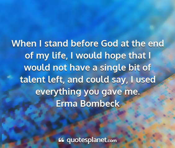 When I stand before God at the end of my life, I would hope that I would not have a single bit of talent left, and could say, I used everything you gave me.Erma Bombeck