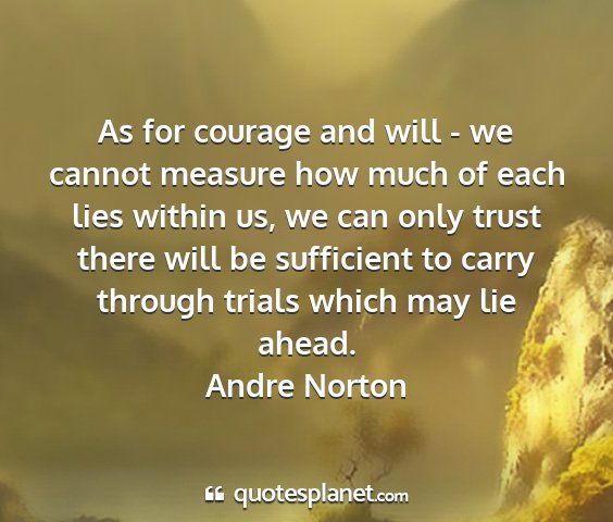 As for courage and will - we cannot measure how much of each lies within us, we can only trust there will be sufficient to carry through trials which may lie ahead.Andre Norton
