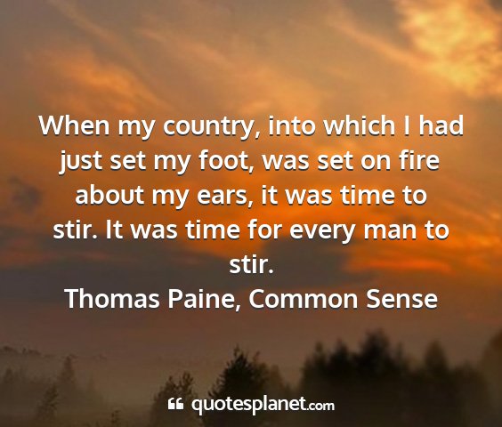When my country, into which I had just set my foot, was set on fire about my ears, it was time to stir. It was time for every man to stir.Thomas Paine, Common Sense