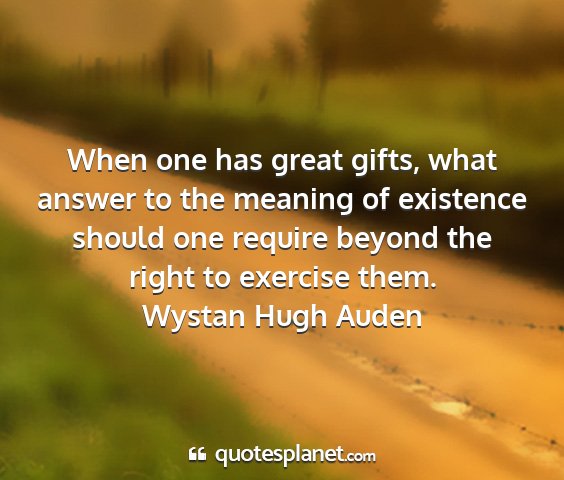 When one has great gifts, what answer to the meaning of existence should one require beyond the right to exercise them.Wystan Hugh Auden