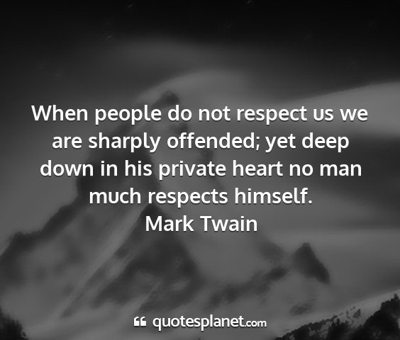 When people do not respect us we are sharply offended; yet deep down in his private heart no man much respects himself.Mark Twain