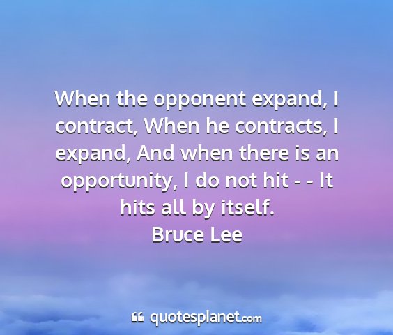 When the opponent expand, I contract, When he contracts, I expand, And when there is an opportunity, I do not hit - - It hits all by itself.Bruce Lee