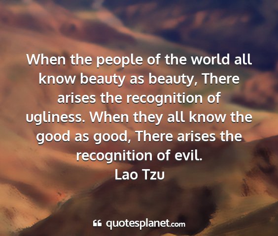 When the people of the world all know beauty as beauty, There arises the recognition of ugliness. When they all know the good as good, There arises the recognition of evil.Lao Tzu
