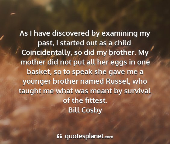 As I have discovered by examining my past, I started out as a child. Coincidentally, so did my brother. My mother did not put all her eggs in one basket, so to speak she gave me a younger brother named Russel, who taught me what was meant by survival of the fittest.Bill Cosby