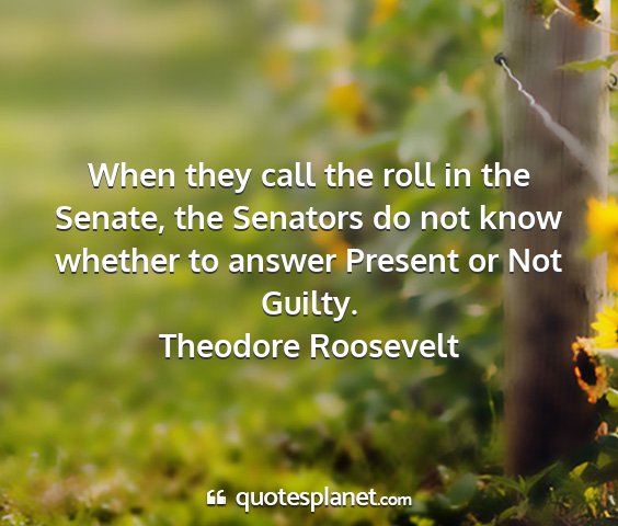 When they call the roll in the Senate, the Senators do not know whether to answer Present or Not Guilty.Theodore Roosevelt