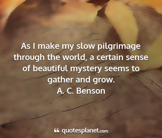 As I make my slow pilgrimage through the world, a certain sense of beautiful mystery seems to gather and grow.A. C. Benson