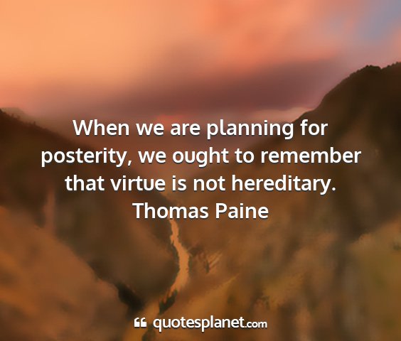 When we are planning for posterity, we ought to remember that virtue is not hereditary.