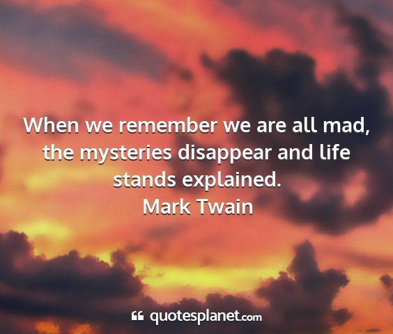 When we remember we are all mad, the mysteries disappear and life stands explained.