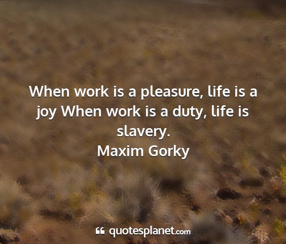 When work is a pleasure, life is a joy When work is a duty, life is slavery.