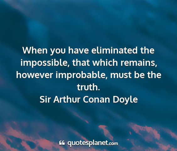 When you have eliminated the impossible, that which remains, however improbable, must be the truth.Sir Arthur Conan Doyle