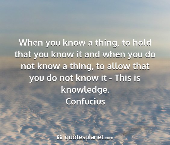 When you know a thing, to hold that you know it and when you do not know a thing, to allow that you do not know it - This is knowledge.