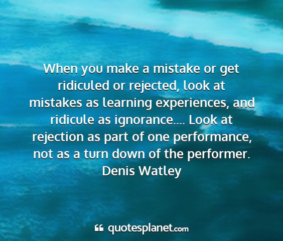 When you make a mistake or get ridiculed or rejected, look at mistakes as learning experiences, and ridicule as ignorance.... Look at rejection as part of one performance, not as a turn down of the performer.Denis Watley
