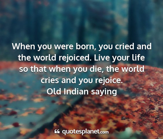 When you were born, you cried and the world rejoiced. Live your life so that when you die, the world cries and you rejoice.Old Indian saying
