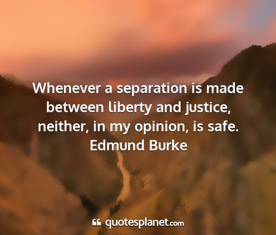 Whenever a separation is made between liberty and justice, neither, in my opinion, is safe.Edmund Burke