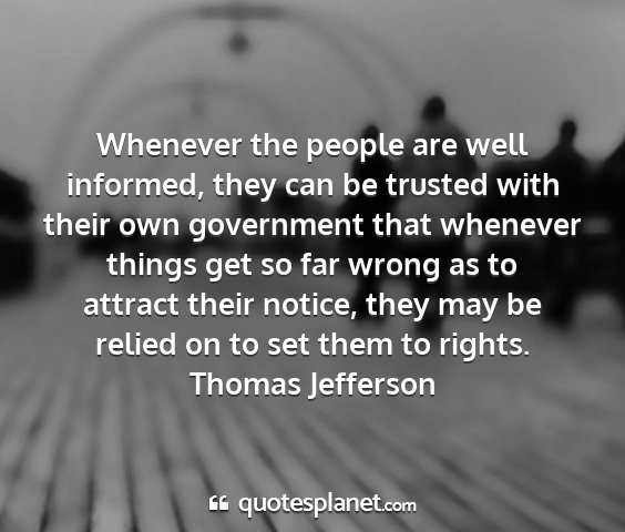 Whenever the people are well informed, they can be trusted with their own government that whenever things get so far wrong as to attract their notice, they may be relied on to set them to rights.Thomas Jefferson