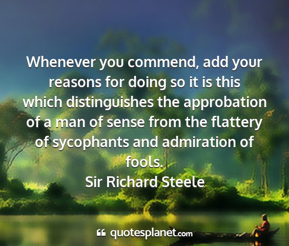 Whenever you commend, add your reasons for doing so it is this which distinguishes the approbation of a man of sense from the flattery of sycophants and admiration of fools.Sir Richard Steele