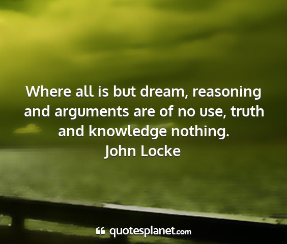 Where all is but dream, reasoning and arguments are of no use, truth and knowledge nothing.John Locke