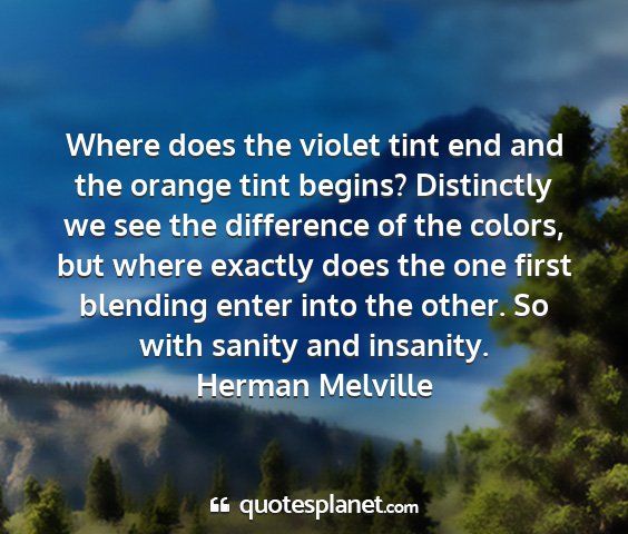 Where does the violet tint end and the orange tint begins? Distinctly we see the difference of the colors, but where exactly does the one first blending enter into the other. So with sanity and insanity.Herman Melville