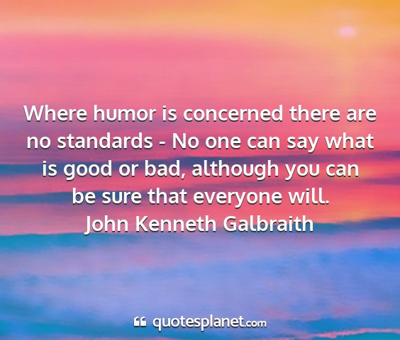 Where humor is concerned there are no standards - No one can say what is good or bad, although you can be sure that everyone will.John Kenneth Galbraith