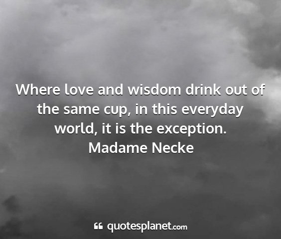 Where love and wisdom drink out of the same cup, in this everyday world, it is the exception.Madame Necke