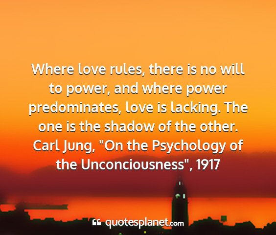 Where love rules, there is no will to power, and where power predominates, love is lacking. The one is the shadow of the other.Carl Jung, "On the Psychology of the Unconciousness", 1917