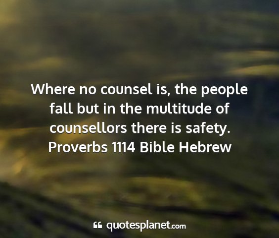 Where no counsel is, the people fall but in the multitude of counsellors there is safety.Proverbs 1114 Bible Hebrew