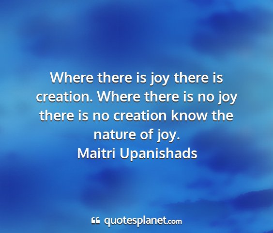 Where there is joy there is creation. Where there is no joy there is no creation know the nature of joy.Maitri Upanishads