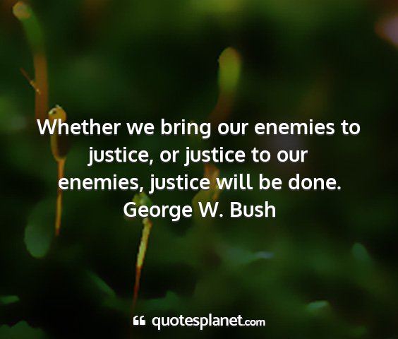 Whether we bring our enemies to justice, or justice to our enemies, justice will be done.George W. Bush