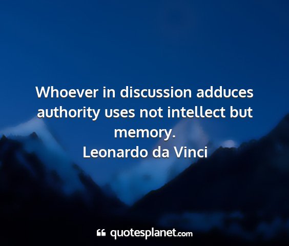 Whoever in discussion adduces authority uses not intellect but memory.