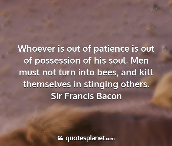 Whoever is out of patience is out of possession of his soul. Men must not turn into bees, and kill themselves in stinging others.Sir Francis Bacon