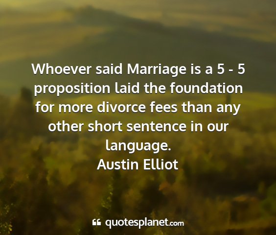 Whoever said Marriage is a 5 - 5 proposition laid the foundation for more divorce fees than any other short sentence in our language.Austin Elliot