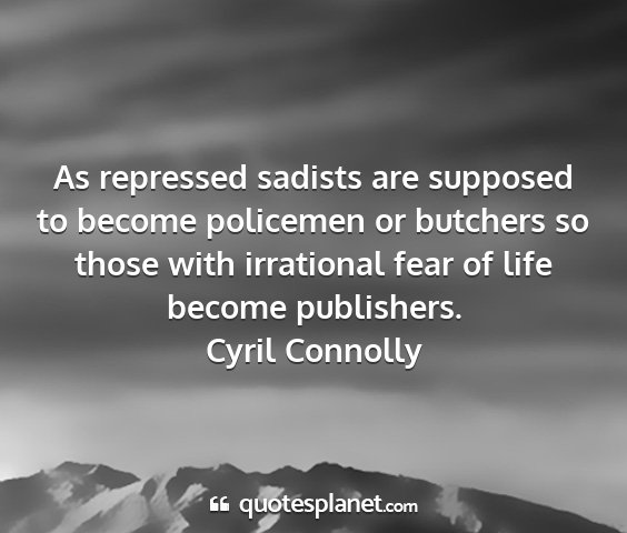 As repressed sadists are supposed to become policemen or butchers so those with irrational fear of life become publishers.Cyril Connolly