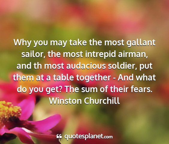 Why you may take the most gallant sailor, the most intrepid airman, and th most audacious soldier, put them at a table together - And what do you get? The sum of their fears.Winston Churchill