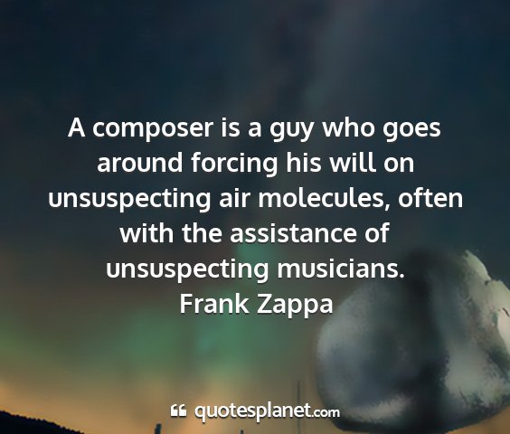 A composer is a guy who goes around forcing his will on unsuspecting air molecules, often with the assistance of unsuspecting musicians.Frank Zappa
