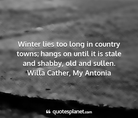 Winter lies too long in country towns; hangs on until it is stale and shabby, old and sullen.Willa Cather, My Antonia