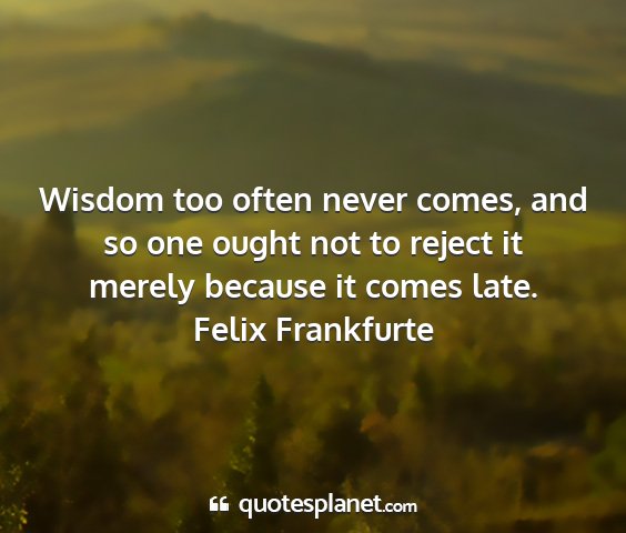 Wisdom too often never comes, and so one ought not to reject it merely because it comes late.Felix Frankfurte