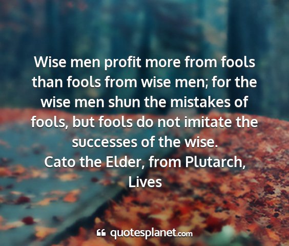 Wise men profit more from fools than fools from wise men; for the wise men shun the mistakes of fools, but fools do not imitate the successes of the wise.Cato the Elder, from Plutarch, Lives