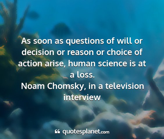 As soon as questions of will or decision or reason or choice of action arise, human science is at a loss.Noam Chomsky, in a television interview