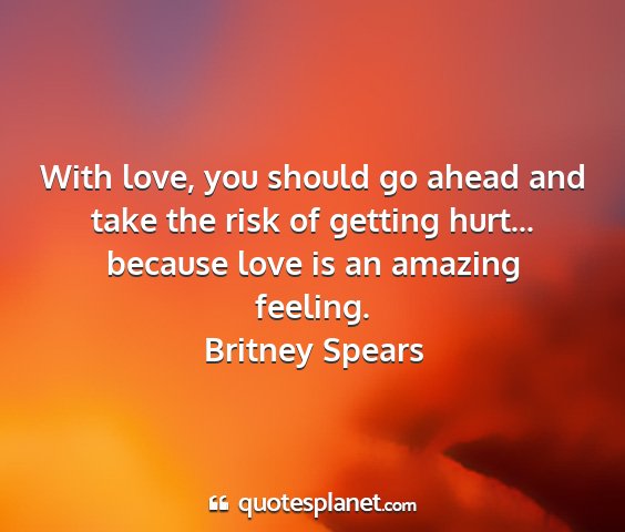 With love, you should go ahead and take the risk of getting hurt... because love is an amazing feeling.Britney Spears