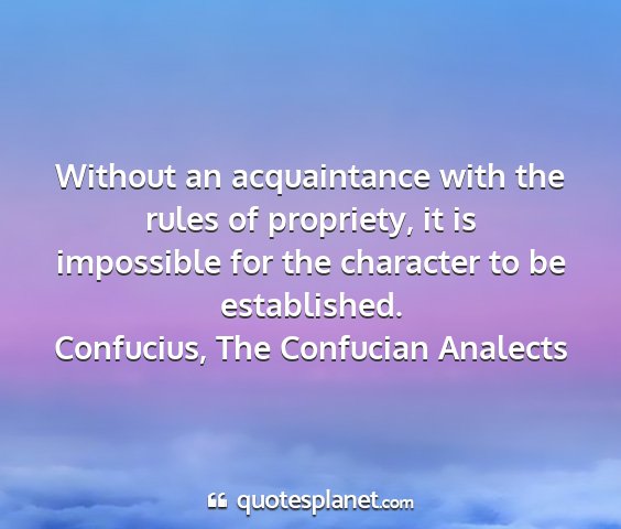 Without an acquaintance with the rules of propriety, it is impossible for the character to be established.Confucius, The Confucian Analects