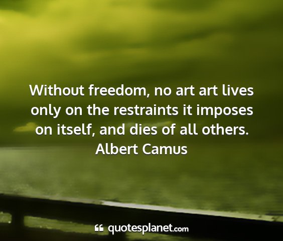Without freedom, no art art lives only on the restraints it imposes on itself, and dies of all others.Albert Camus
