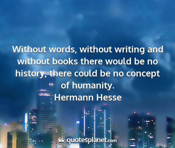 Without words, without writing and without books there would be no history, there could be no concept of humanity.Hermann Hesse