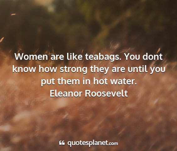 Women are like teabags. You dont know how strong they are until you put them in hot water.Eleanor Roosevelt