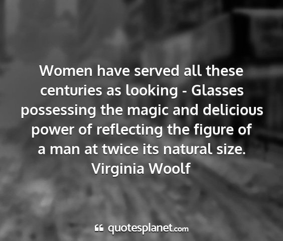 Women have served all these centuries as looking - Glasses possessing the magic and delicious power of reflecting the figure of a man at twice its natural size.Virginia Woolf
